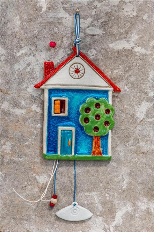 Handmade ceramic village house wall decor