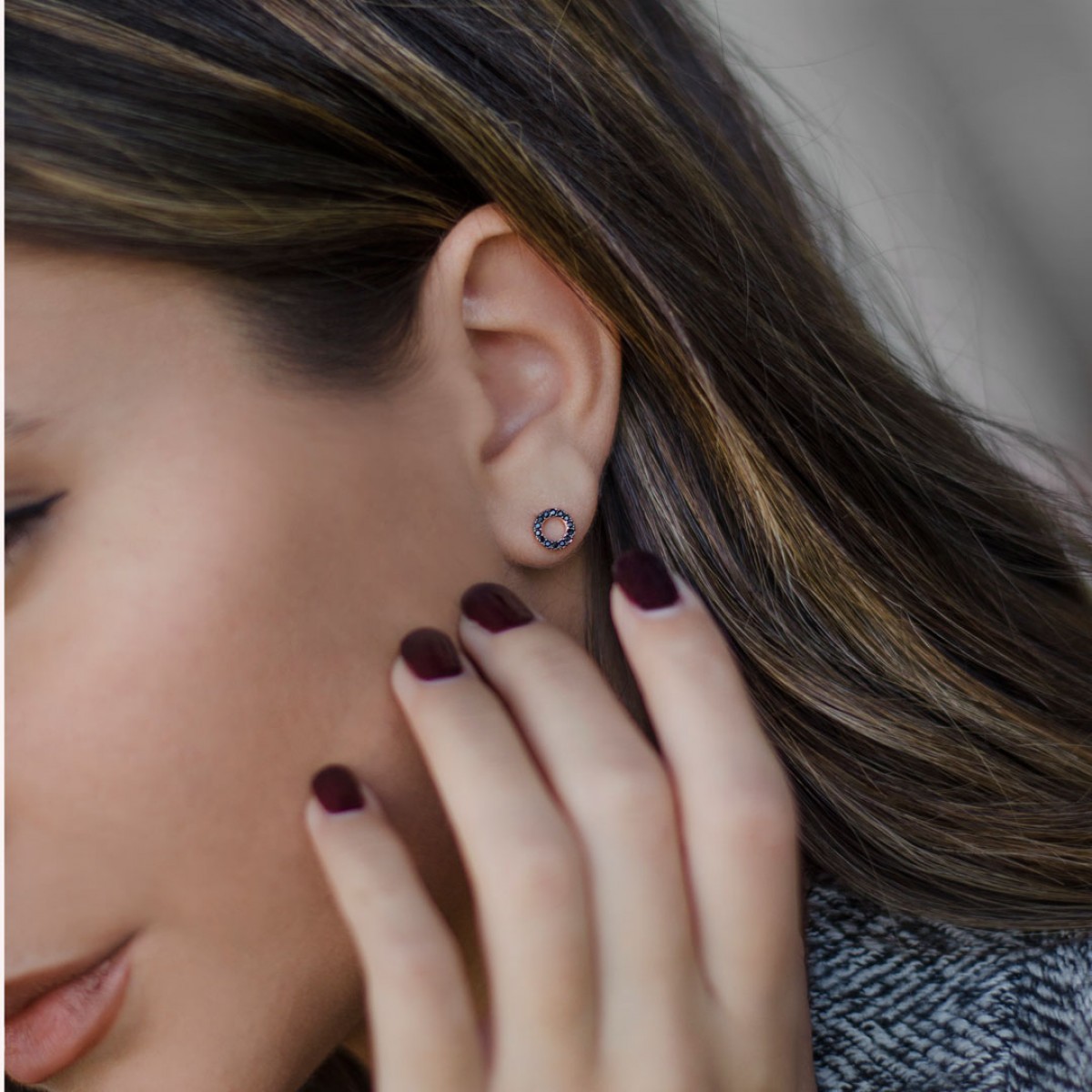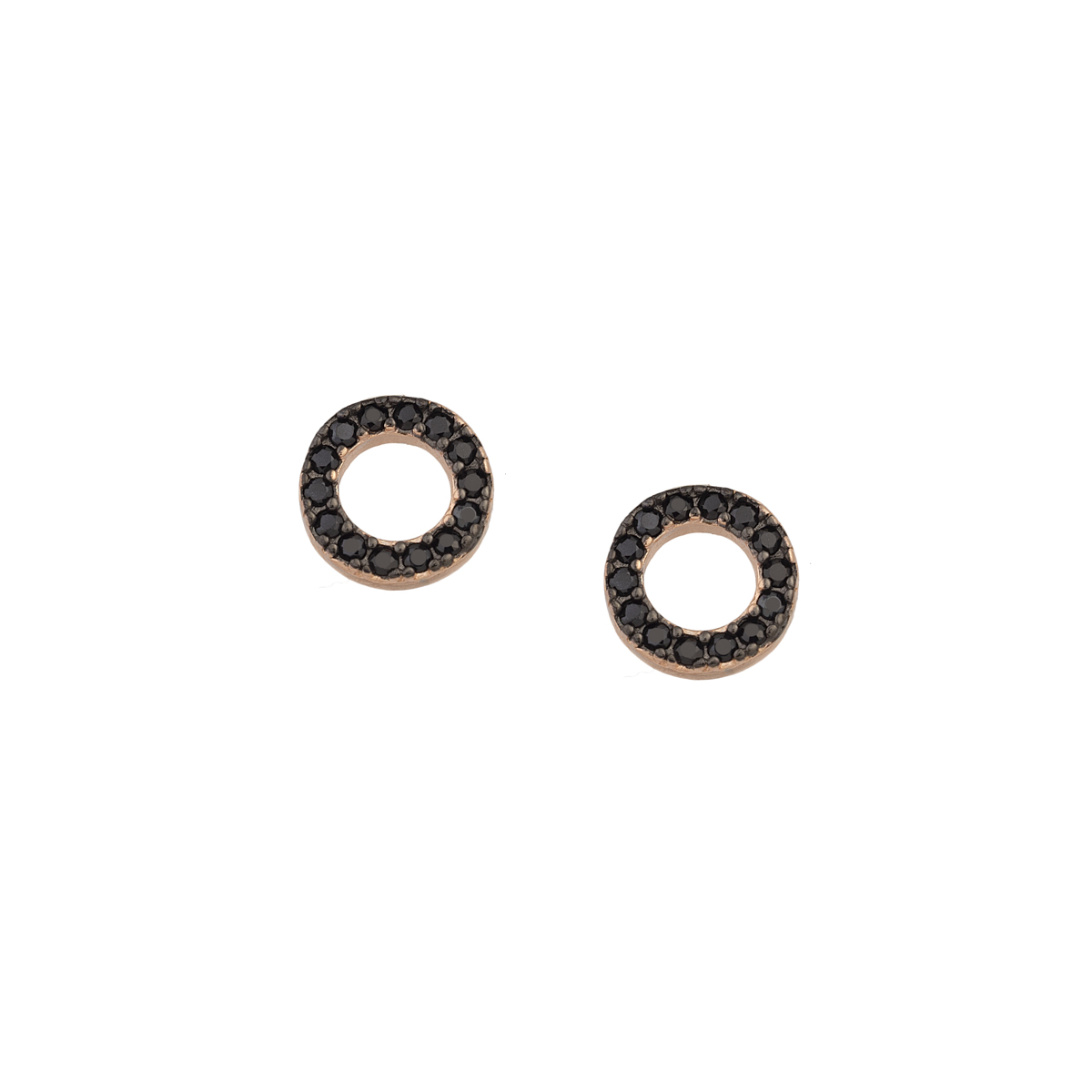 SIlver 925 stud earrings, rose gold plated, circle shaped, with black cz