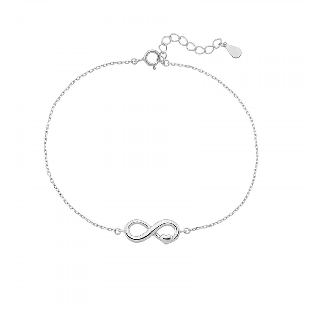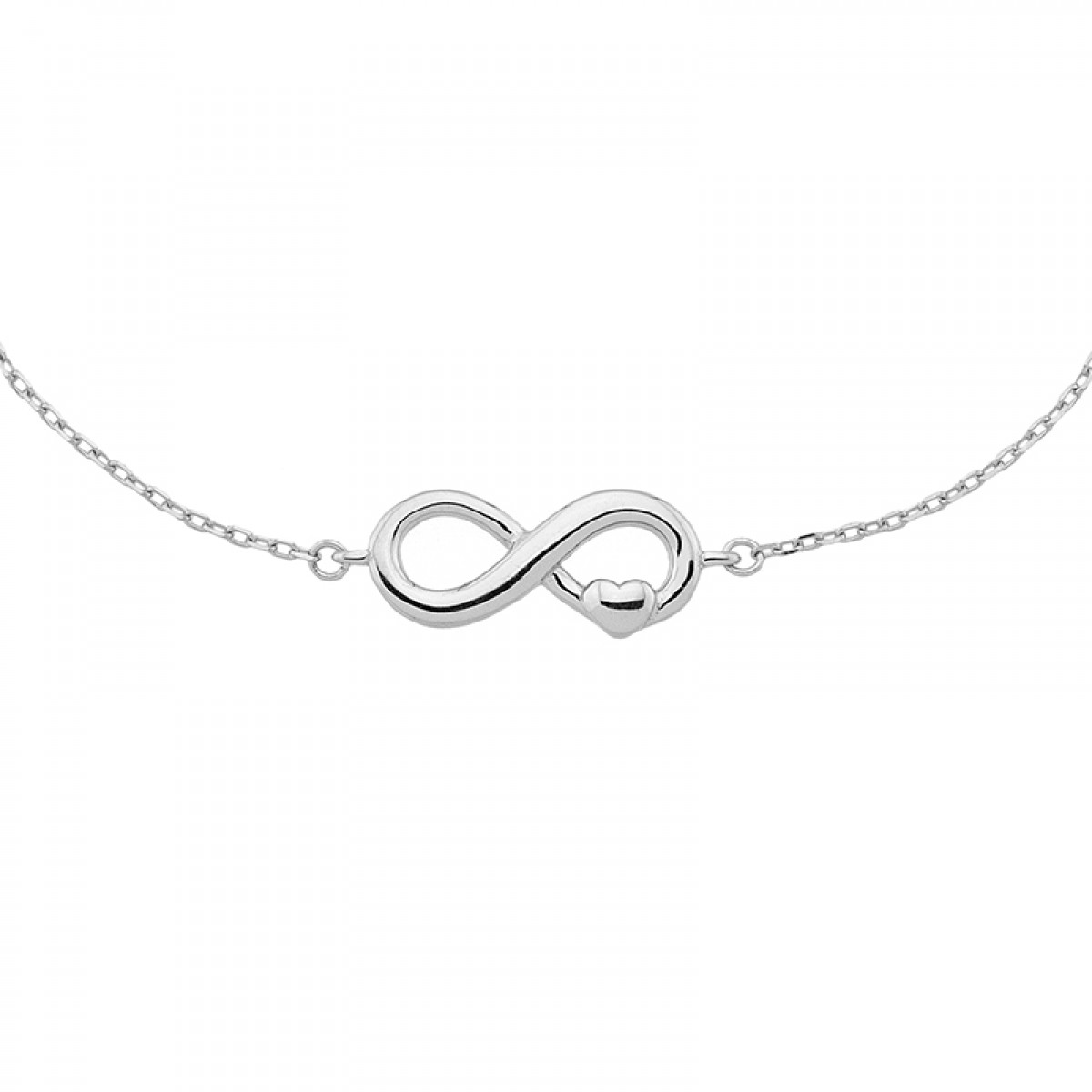 An elegant infinity bracelet with a little heart, made of rodium plated silver 925