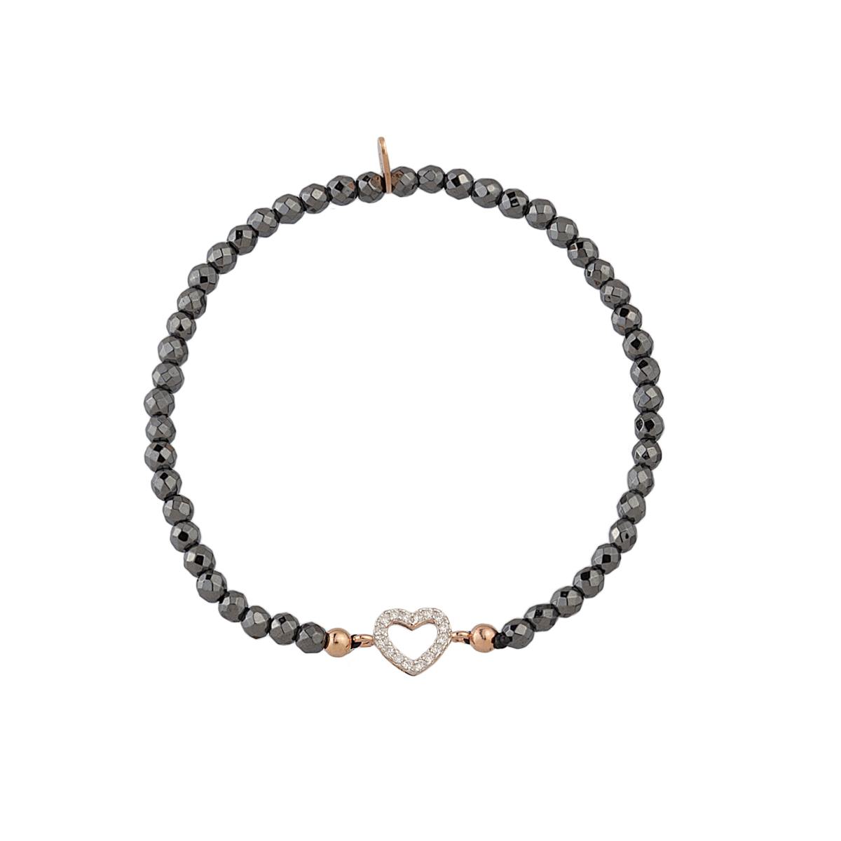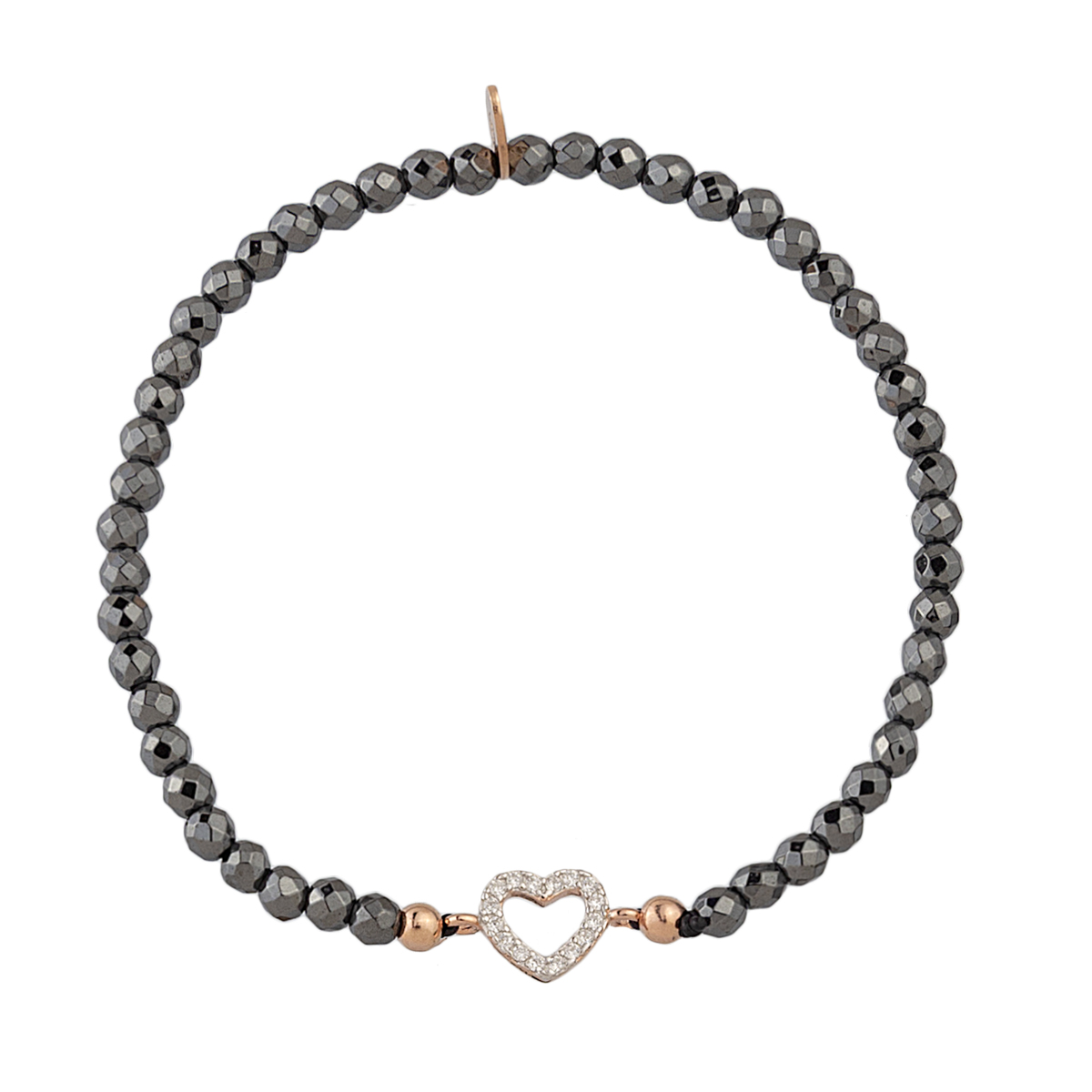 A bracelet with semi precious stones and a rose plated silver 925 heart.