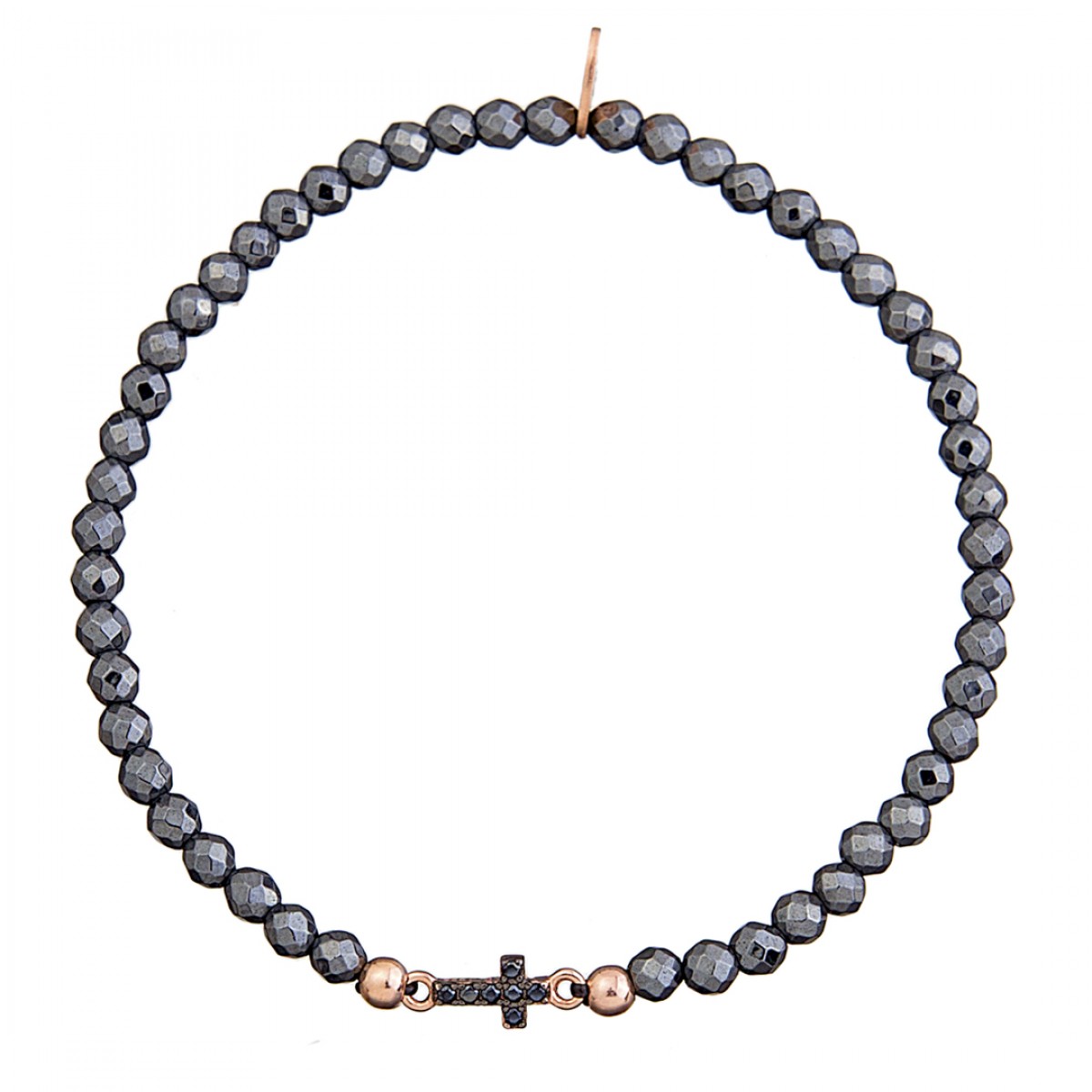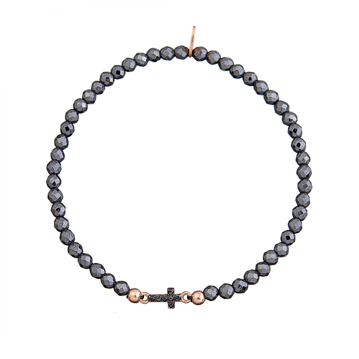 Semi precious stone bracelet with a rose gold plated silver 925 cross.