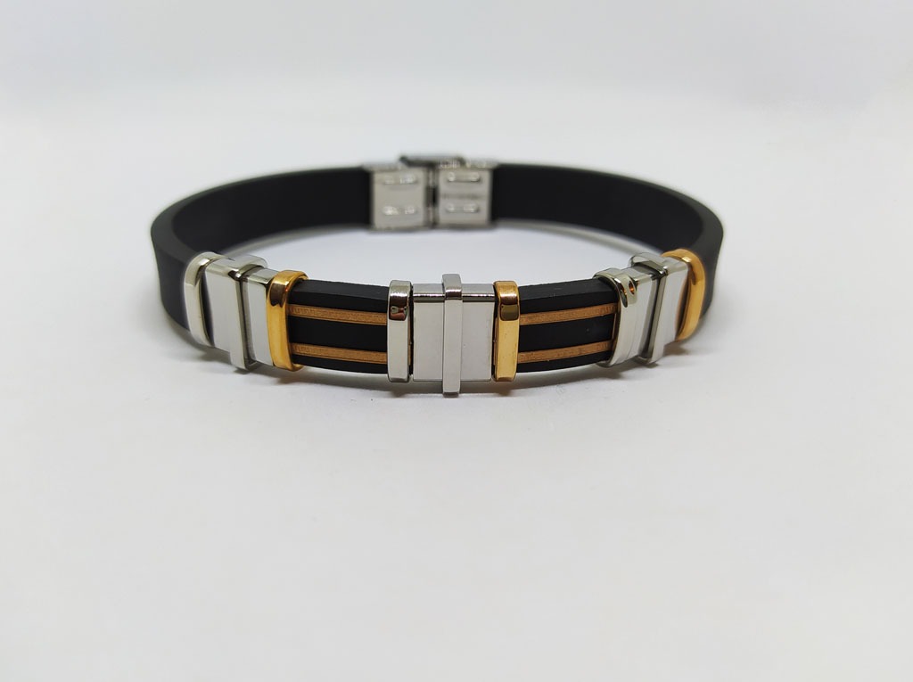 ΑΝΔΡΙΚΟ ΑΤΣΑΛΙΝΟ ΒΡΑΧΙΟΛΙ ΜΕ ΚΑΟΥΤΣΟΥΚ ΚΑΙ ΡΟΖ ΕΠΙΧΡΥΣΩΣΗ