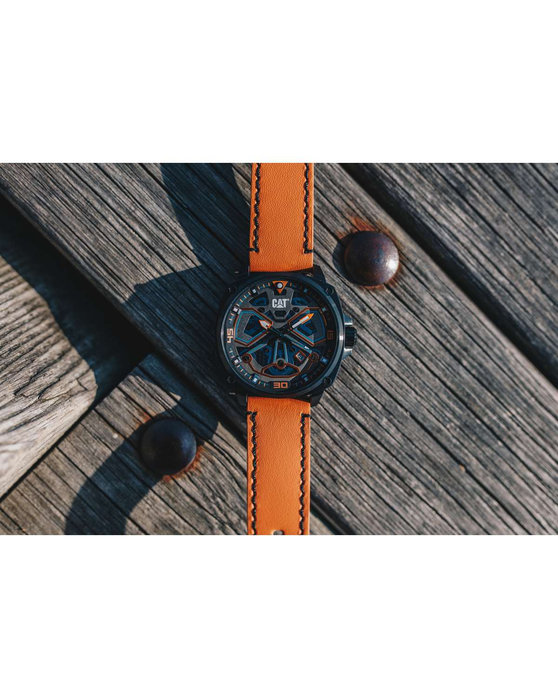 Ανδρικό ρολόι CATERPILLAR Tokyo Orange Leather Strap.