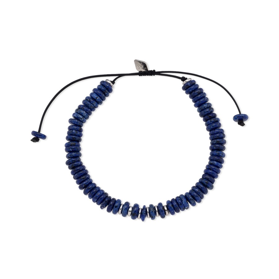 Ένα βραχιόλι με ημιπολύτιμες πέτρες από λάπις και στοιχεία από επιπλατινωμένο ασήμι 925° της ανδρικής συλλογής J4.