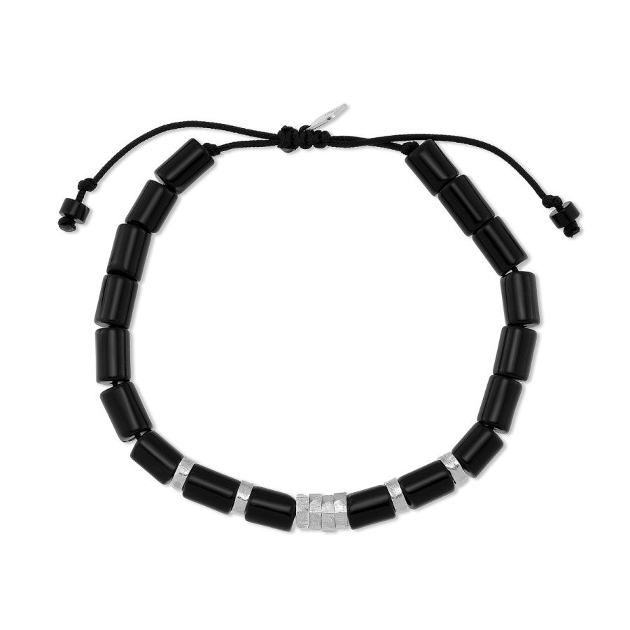 Ένα βραχιόλι με ημιπολύτιμες πέτρες από όνυχα και στοιχεία από επιπλατινωμένο ασήμι 925° της ανδρικής συλλογής J4.