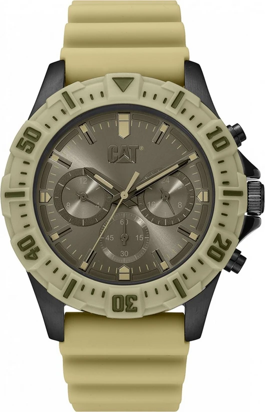 Το CAT PZ.159.28.929 είναι ένα ανδρικό ρολόι χρονογράφος με μπεζ καουτσούκ λουράκι που συνδυάζει στιβαρή κατασκευή και αθλητική εμφάνιση.