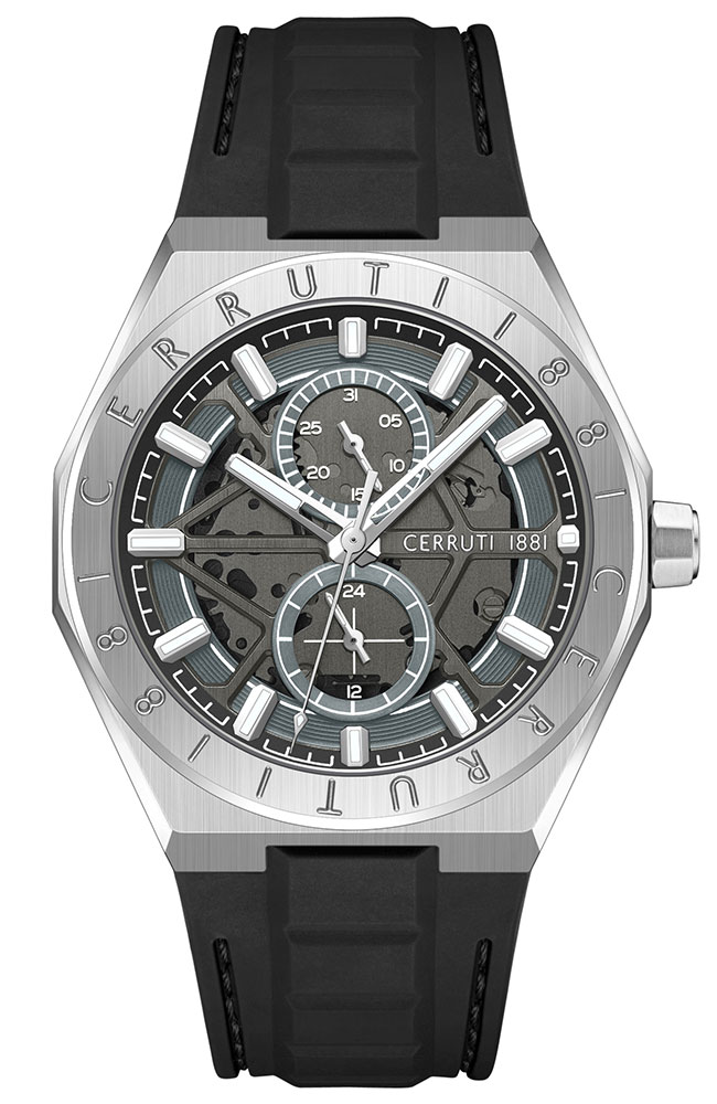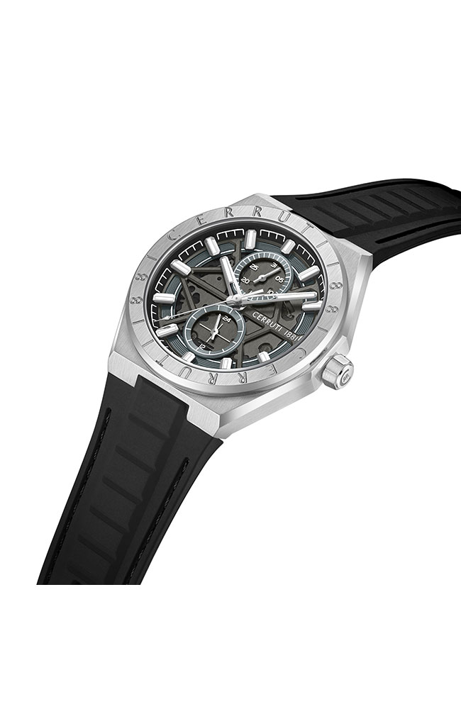 Ανδρικό ρολόι Cerruti από ανοξείδωτο ατσάλι με μαύρο καντράν και καουτσούκ λουράκι.