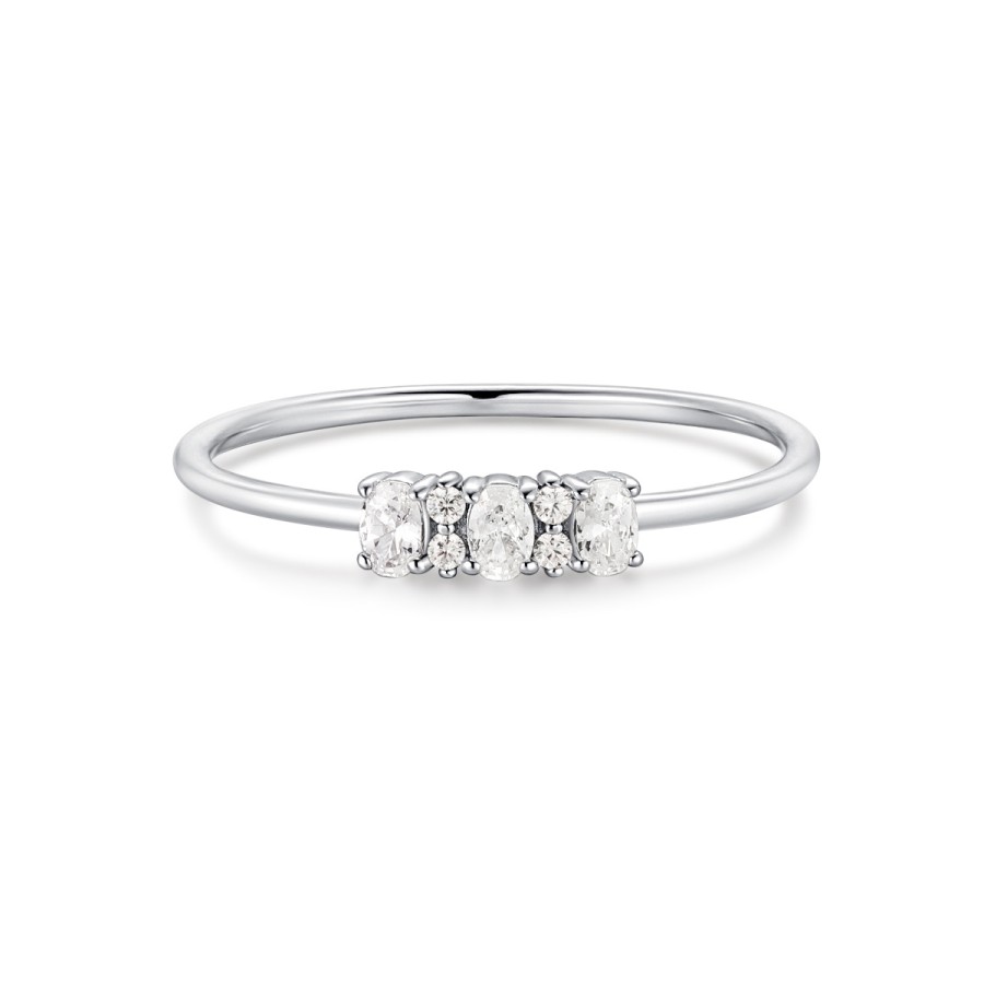 Ένα κομψό δαχτυλίδι σχέδιο μισόβερο της collection Elegance με λευκά ζιργκόν από επιπλατινωμένο ασήμι 925°.