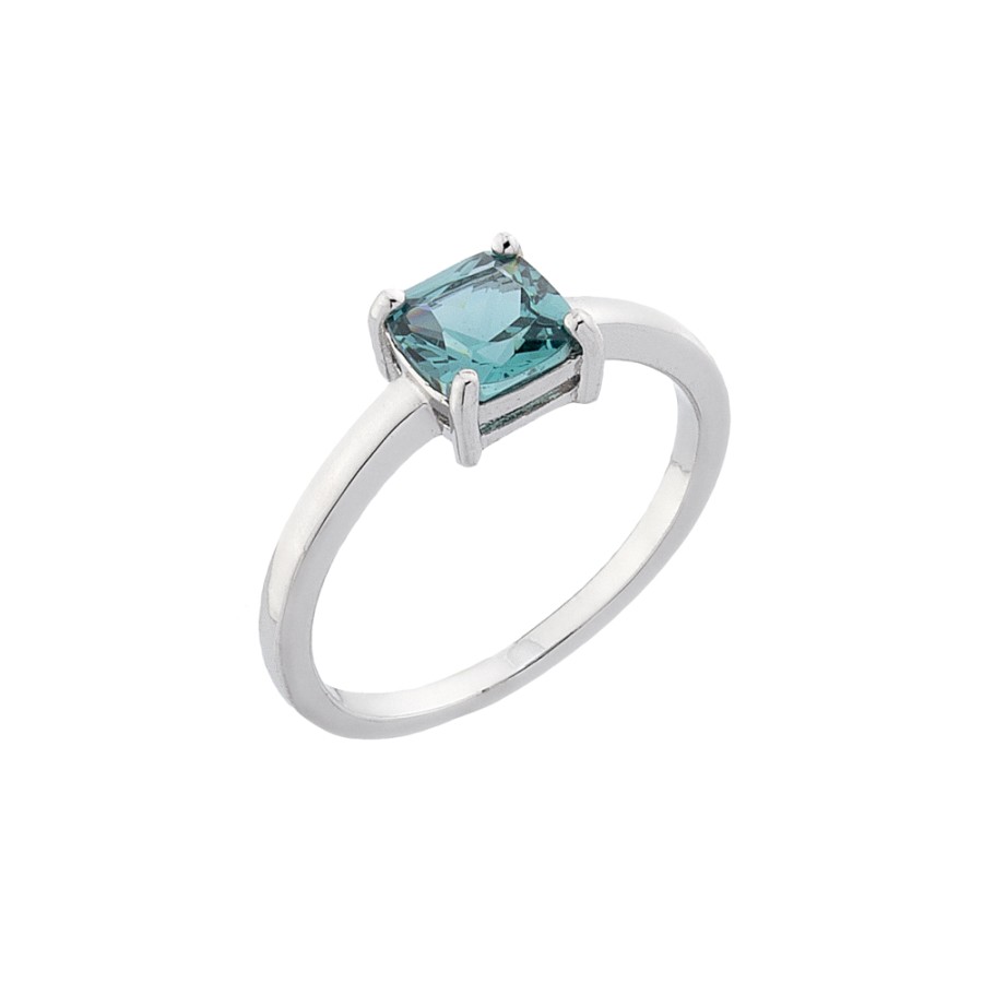 Ένα κομψό δαχτυλίδι μονόπετρο τετράγωνο με πετρόλ (Green Saphire colour) ζιργκόν της collection JEMS από επιπλατινωμένο ασήμι 925.