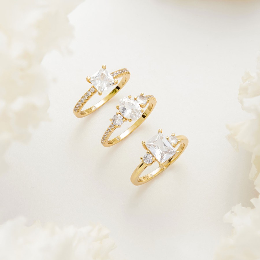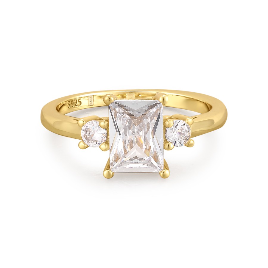 Ένα κομψό δαχτυλίδι μονόπετρο από επιχρυσωμένο ασήμι 925° με πέτρες ζιργκόν.