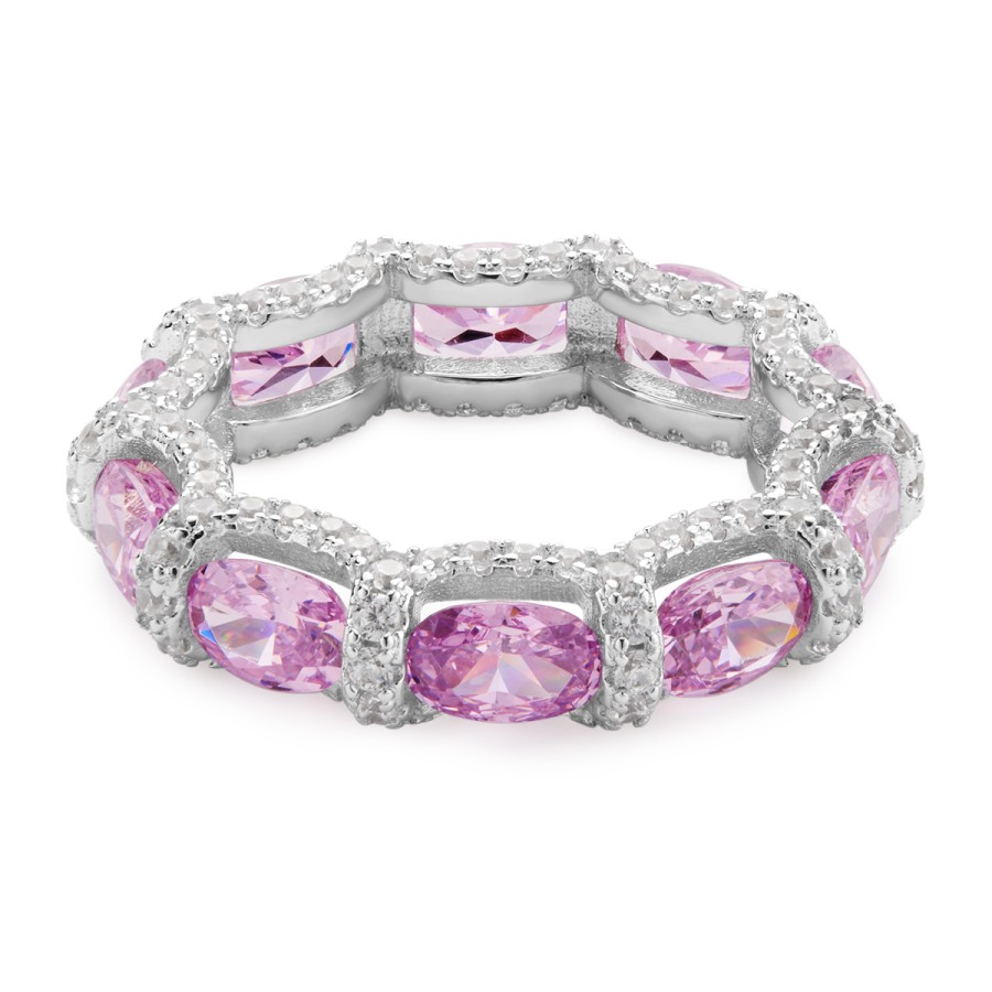 Ένα εντυπωσιακό δαχτυλίδι ολόβερο της collection Jems με μωβ και λευκά ζιργκόν ιδιαίτερης κοπής από επιπλατινωμένο ασήμι 925°.