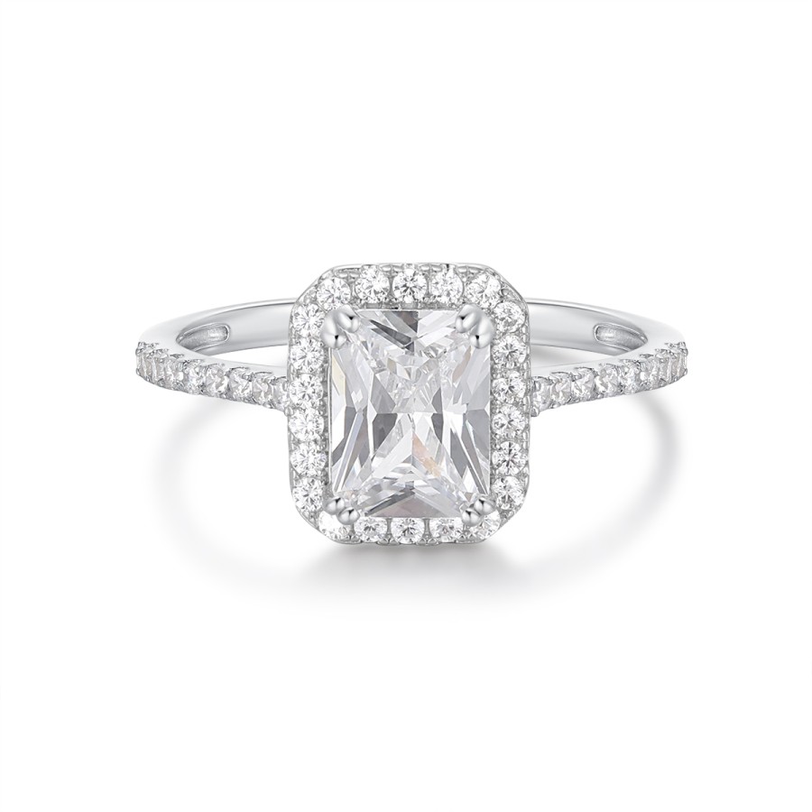 Ένα εντυπωσιακό δαχτυλίδι ροζέτα της collection Selene με λευκά ζιργκόν από επιπλατινωμένο ασήμι 925°.