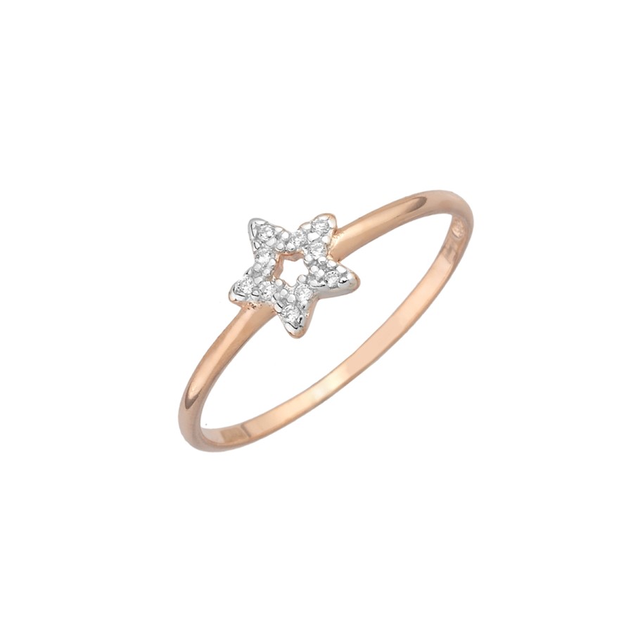 Ένα κομψό δαχτυλίδι σχέδιο αστέρι της collection elle απο ροζ επιχρυσωμένο ασήμι 925° με λευκά ζιργκόν.