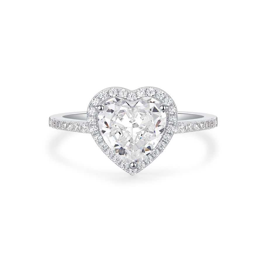 Ένα εντυπωσιακό δαχτυλίδι στικ σχέδιο ροζέτα καρδιά της collection Jems με λευκές πέτρες ζιργκόν ιδιαίτερης κοπής από επιπλατινωμένο ασήμι 925°.