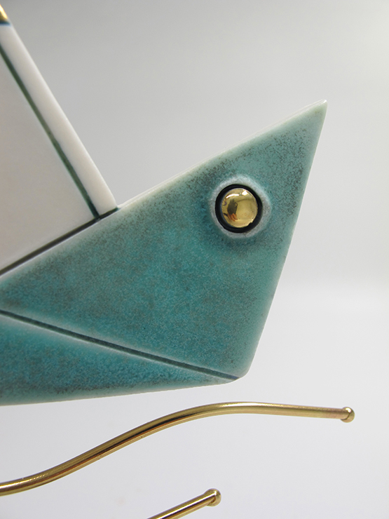 Χειροποίητο επιτραπέζιο διακοσμητικό, σε τρία χρώματα, από εξαιρετικής ποιότητας λευκή πορσελάνη, ψημένη στους 1250°C. Ο χρυσός είναι 24k ψημένος στους 840°C. Στηρίζεται σε κεραμική βάση και το μέταλλο που ολοκληρώνει τον σχεδιασμό του είναι λουστραρισμένος ορείχαλκος (μπρούτζος).