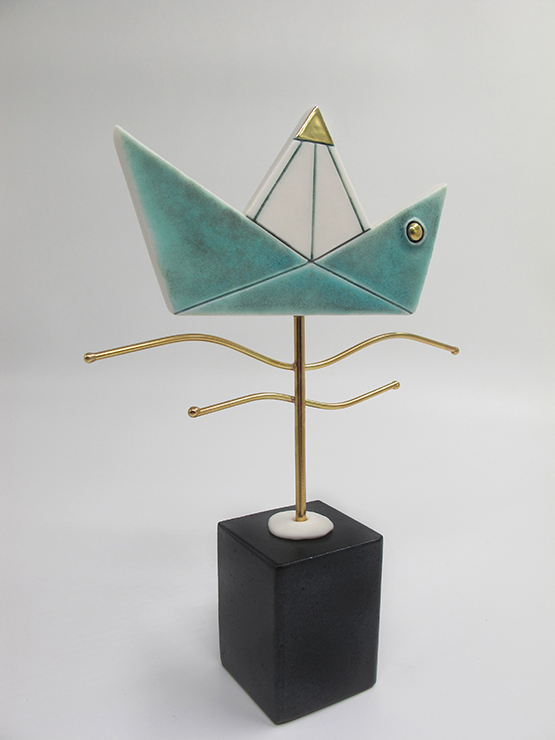 Επιτραπέζιο κεραμικό διακοσμητικό, βάρκα με βάση.
