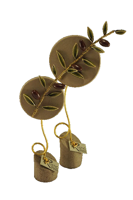 Επιτραπέζιο κεραμικό διακοσμητικό, γούρι ελιά σε βάση.