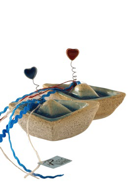 Επιτραπέζιο κεραμικό διακοσμητικό, βάρκα με βάση.