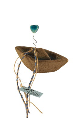 Σχέδιο καραβάκι σε καφέ χρώμα, με καρδούλα σε τυρκουάζ χρώμα.