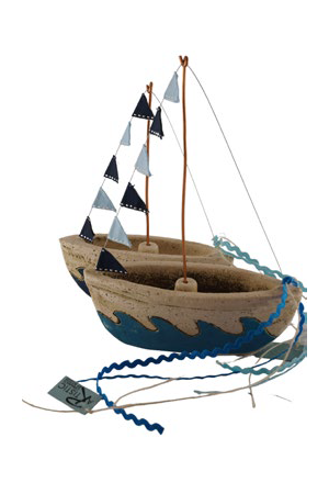 Επιτραπέζιο κεραμικό διακοσμητικό, καραβάκι με σημαιάκια.