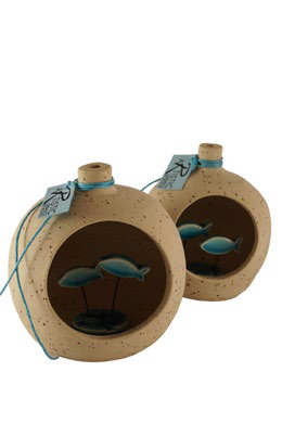 Επιτραπέζιο κεραμικό διακοσμητικό, μπουκάλι με ψάρια.