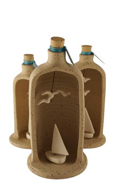 Επιτραπέζιο κεραμικό διακοσμητικό, μπουκάλι με βάρκες και γλάρους.