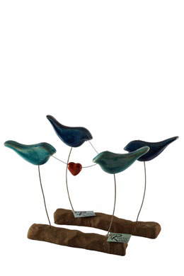 Επιτραπέζιο κεραμικό διακοσμητικό, πουλιά με καρδιά.