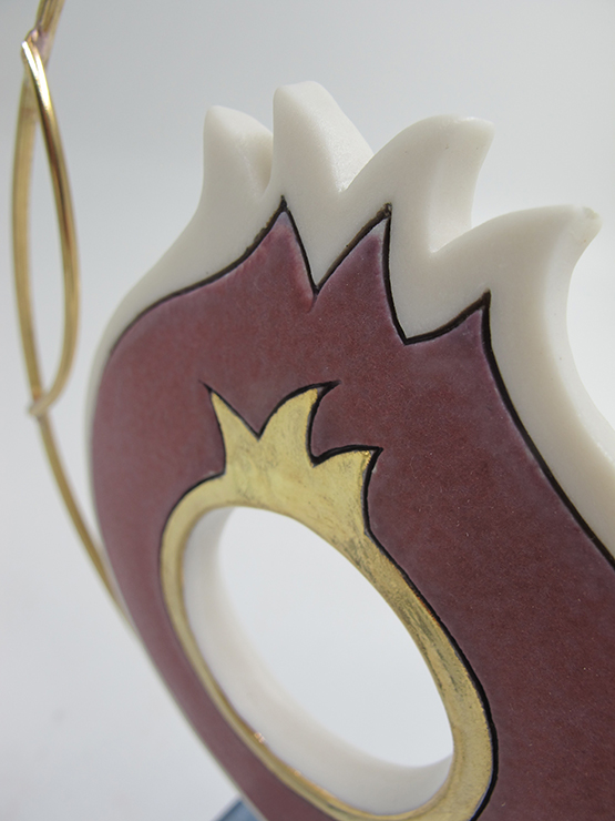 Χειροποίητο επιτραπέζιο διακοσμητικό, από εξαιρετικής ποιότητας λευκή πορσελάνη, ψημένη στους 1250°C. Ο χρυσός είναι 24k ψημένος στους 840°C. Στηρίζεται σε κεραμική βάση και το μέταλλο που ολοκληρώνει τον σχεδιασμό του είναι λουστραρισμένος ορείχαλκος (μπρούτζος).