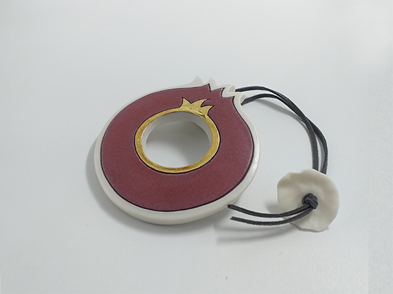 Χειροποίητο κρεμαστό διακοσμητικό ρόδι, από εξαιρετικής ποιότητας λευκή πορσελάνη.