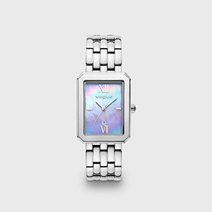 Γυναικείο ρολόι Vogue Octagon με ασημί ατσάλινο μπρασελέ και ιριδίζον γαλάζιο καντράν από φίλντισι.