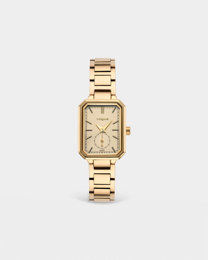 Γυναικείο ρολόι Vogue Elegant με ατσάλινο μπρασελέ σε χρυσή επιμετάλλωση και σαμπανί καντράν.