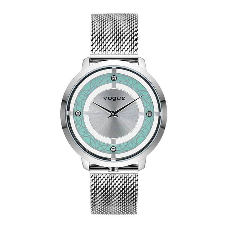 Γυναικείο ρολόι Vogue Octagon με ασημί ατσάλινο μπρασελέ και ιριδίζον γαλάζιο καντράν από φίλντισι.