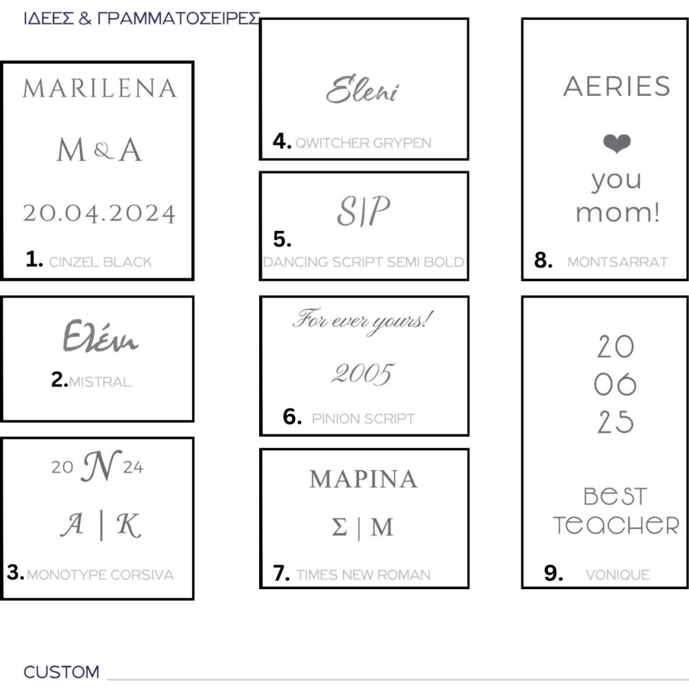 Για την περίπτωση που επιθυμείτε να χαράξετε οτιδήποτε επάνω στο μοτίφ, παρακαλούμε όπως επικοινωνήσετε πρώτα τηλεφωνικά με το κατάστημά μας.