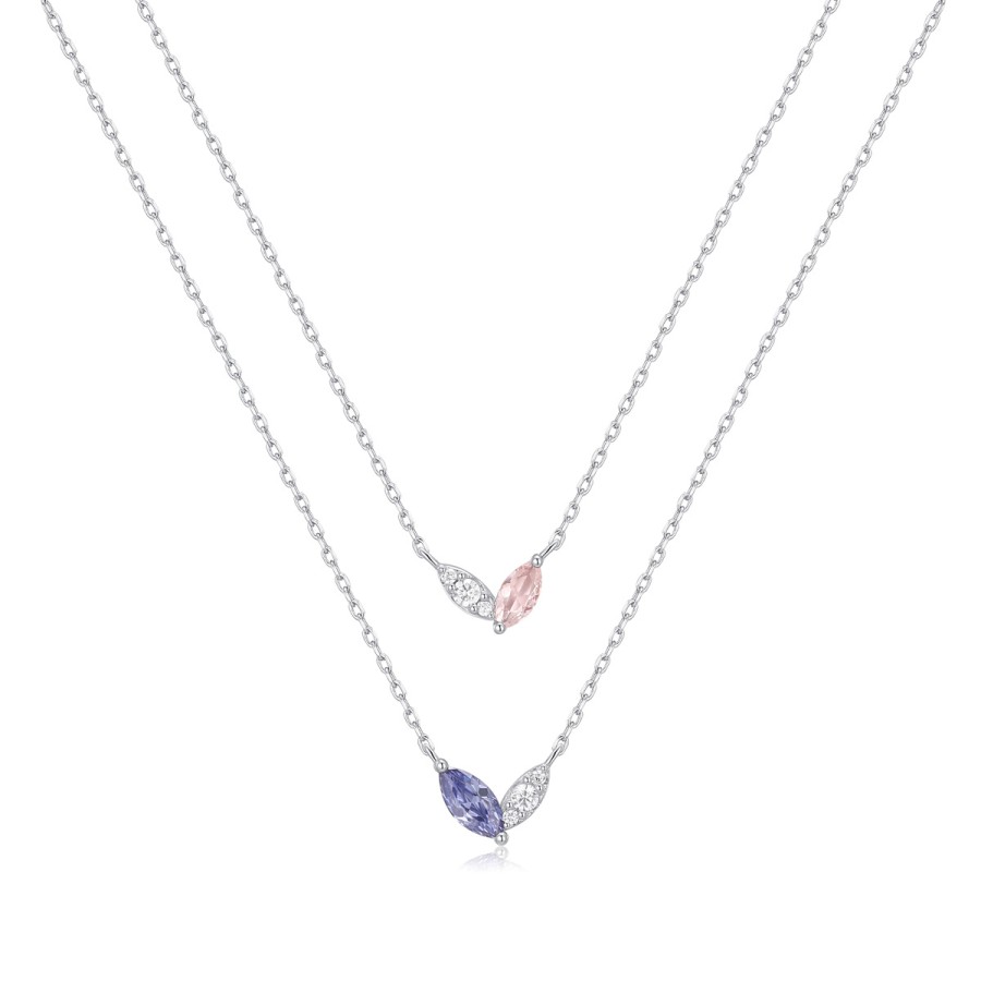 Ένα ιδιαίτερο κολιέ με διπλή αλυσίδα σχέδιο δίπετρο της Συλλογής Jems , με πέτρες ζιργκόν μπλε ( tanzanite colour) ροζ ( morganite colour ) και λευκές από επιπλατινωμένο ασήμι 925°. Μήκος αλυσίδας 40 + 5cm .
