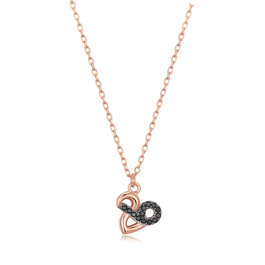 Kολιέ γούρι 2026 από τα Jewelies με σχέδιο 26 με μαύρες πέτρες ζιργκόν από ροζ επιχρυσωμένο ασήμι 925° και μαύρο ρόδιο πάνω στις πέτρες .Μήκος αλυσίδας 38+5cm και διαστάσεις μοτίφ πλάτος 8,4 mm ύψος 7,7mm