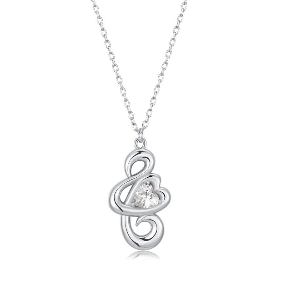Kολιέ γούρι 2026 από τα Jewelies με σχέδιο 26 με λευκή πέτρα ζιργκόν κοπής σε σχήμα καρδιάς από επιπλατινωμένο ασήμι 925° .Μήκος αλυσίδας 38+5cm και διαστάσεις μοτίφ πλάτος 13,2 mm ύψος 21mm