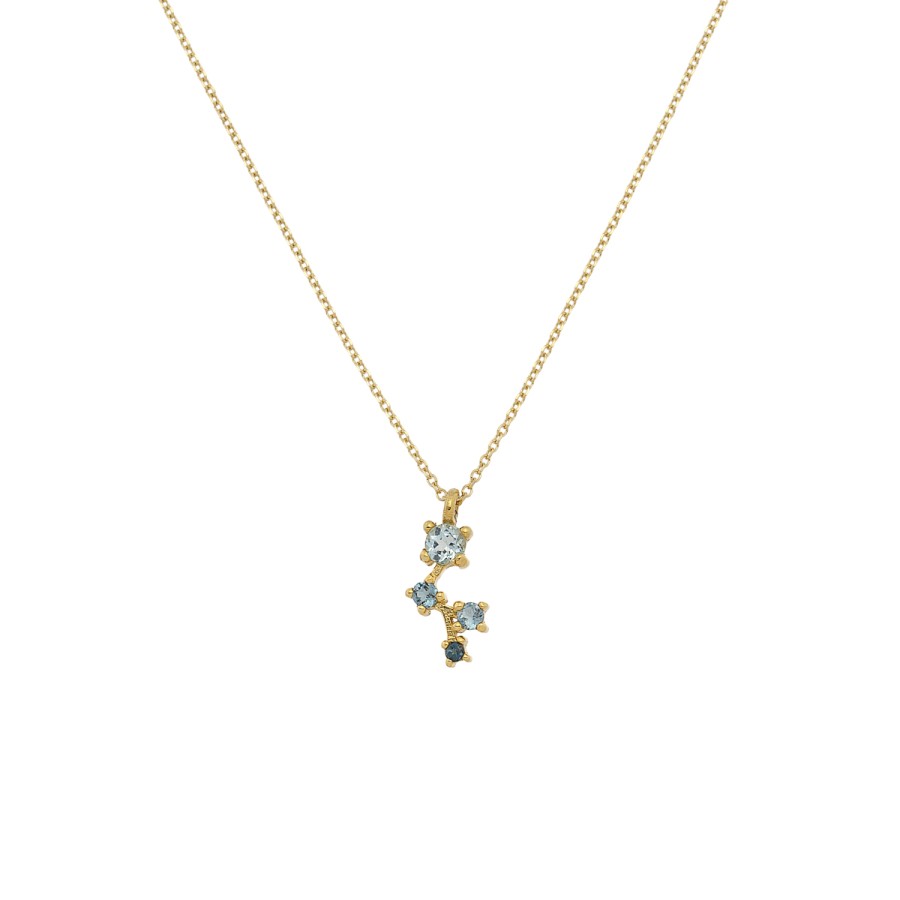 Ένα κομψό κολιέ από χρυσό 9 καρατίων της collection Gems με ημιπολύτιμες πέτρες blue topaz london blue και aquamarina. Μήκος αλυσίδας 40cm
