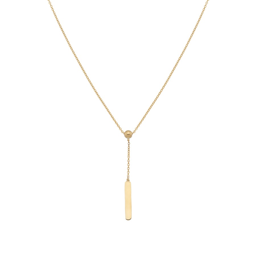 Ένα κομψό κολιέ σχέδιο γραβάτα με μπίλια και κρεμαστή μπάρα της Collection Alicia από χρυσό 9 καρατίων.Μήκος αλυσίδας 40cm , διαστάσεις μοτίφ ύψος 14,5mm πλάτος 2,35mm