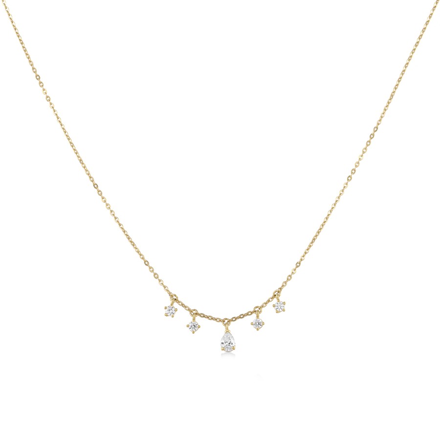 Ένα κομψό κολιέ με αλυσίδα σχέδιο μονόπετρα της collection Alicia από χρυσό 9 καρατίων με πέτρες ζιργκόν . Mήκος 42-45cm