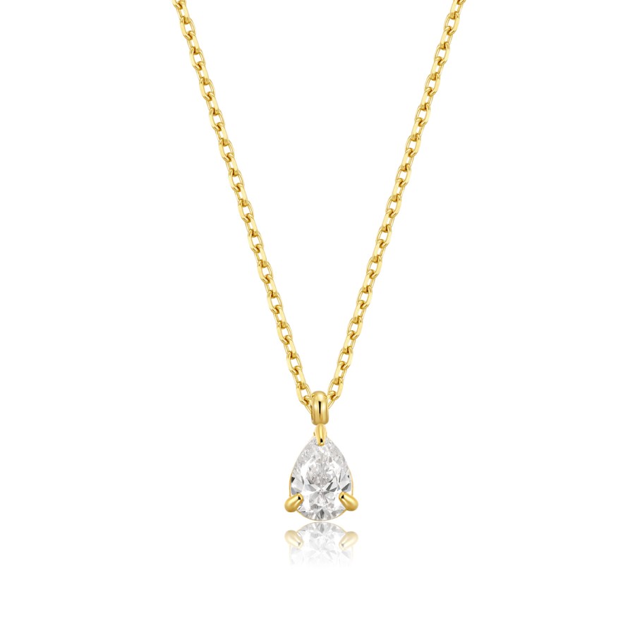 Kολιέ σχέδιο αλυσίδα με μονόπετρο δάκρυ από επιχρυσωμένο ανοξείδωτο ατσάλι ( stainless steel ) της collection Kirra , ιδανικό για layering .