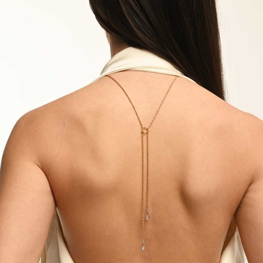 Ένα ιδιαίτερο κολιέ σχέδιο γραβάτα με μονόπετρα από επιχρυσωμένο ανοξείδωτο ατσάλι ( stainless steel ) της collection Kirra , ιδανικό layering .