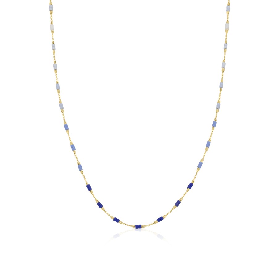 Ένα κομψό κολιέ αλυσίδα με πέτρες στις αποχρώσεις του μπλε από χρυσό 14 καρατίων και μήκος αλυσίδας 45cm με δυνατότητα να κουμπώσει στα 43 και 41cm.