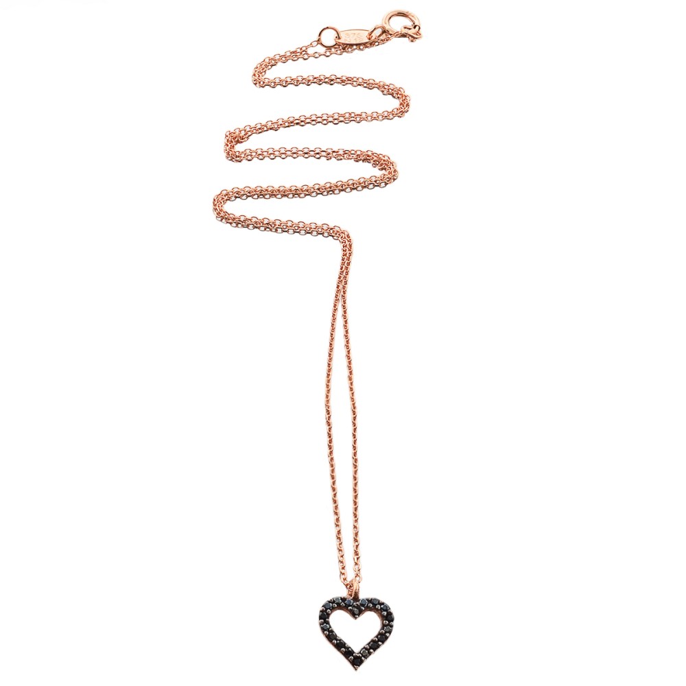 Κολιέ με αλυσίδα jewls and jems, σχέδιο καρδιά με μαύρα ζιργκόν από ροζ χρυσό 9 καρατίων