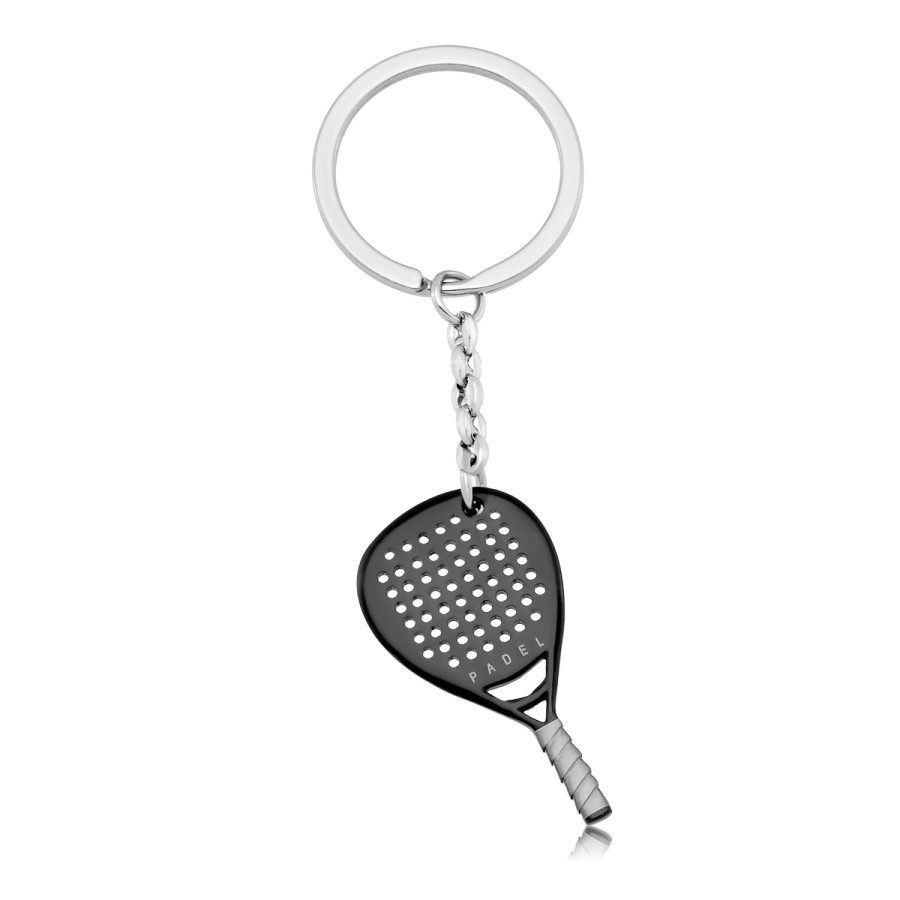 Μπρελόκ J4 σχέδιο μαύρη ρακέτα padel από ανοξείδωτο ατσάλι.