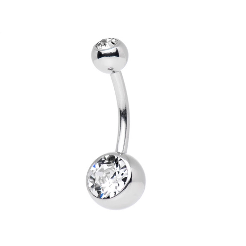Σκουλαρίκι αφαλού belly piercing με μπάρα από ανοξείδωτο ατσάλι και λευκή πέτρα ζιργκόν.