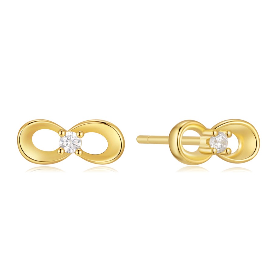 Ένα κομψό ζευγάρι σκουλαρίκια στικ σχέδιο Infinity της collection elle από επιχρυσωμένο ασήμι 925° με λευκά ζιργκόν.
