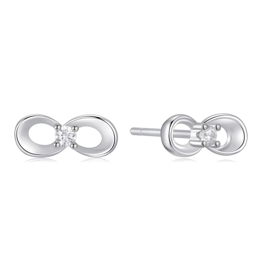 Ένα κομψό ζευγάρι σκουλαρίκια στικ σχέδιο Infinity της collection elle από επιπλατινωμένο ασήμι 925° με λευκά ζιργκόν.