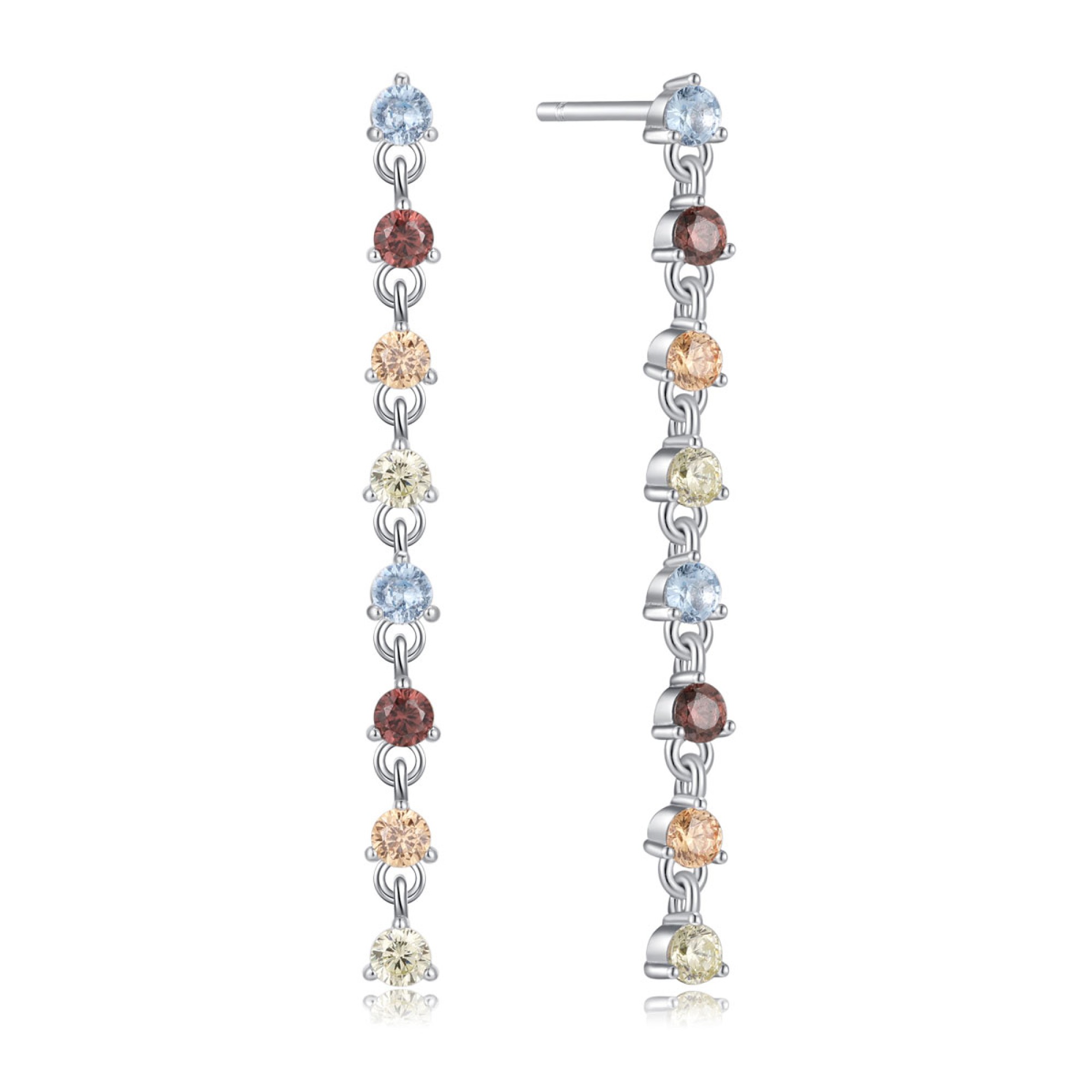 Ένα εντυπωσιακό ζευγάρι σκουλαρίκια κρεμαστά της συλλογής JEMS από επιπλατινωμένο ασήμι 925° με χρωματιστά ζιργκόν.