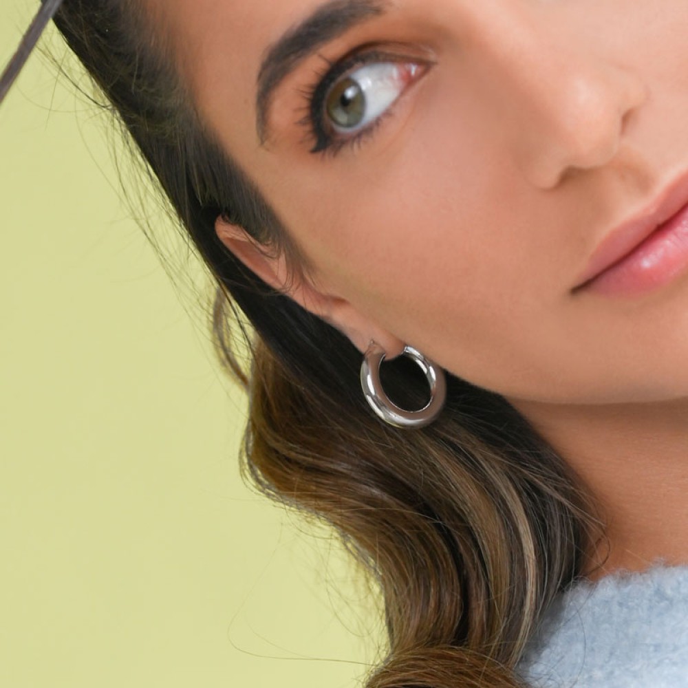 Σκουλαρίκια jewls and jems, κρίκοι χοντροί από επιπλατινωμένο ασήμι 925°