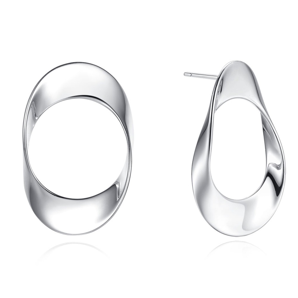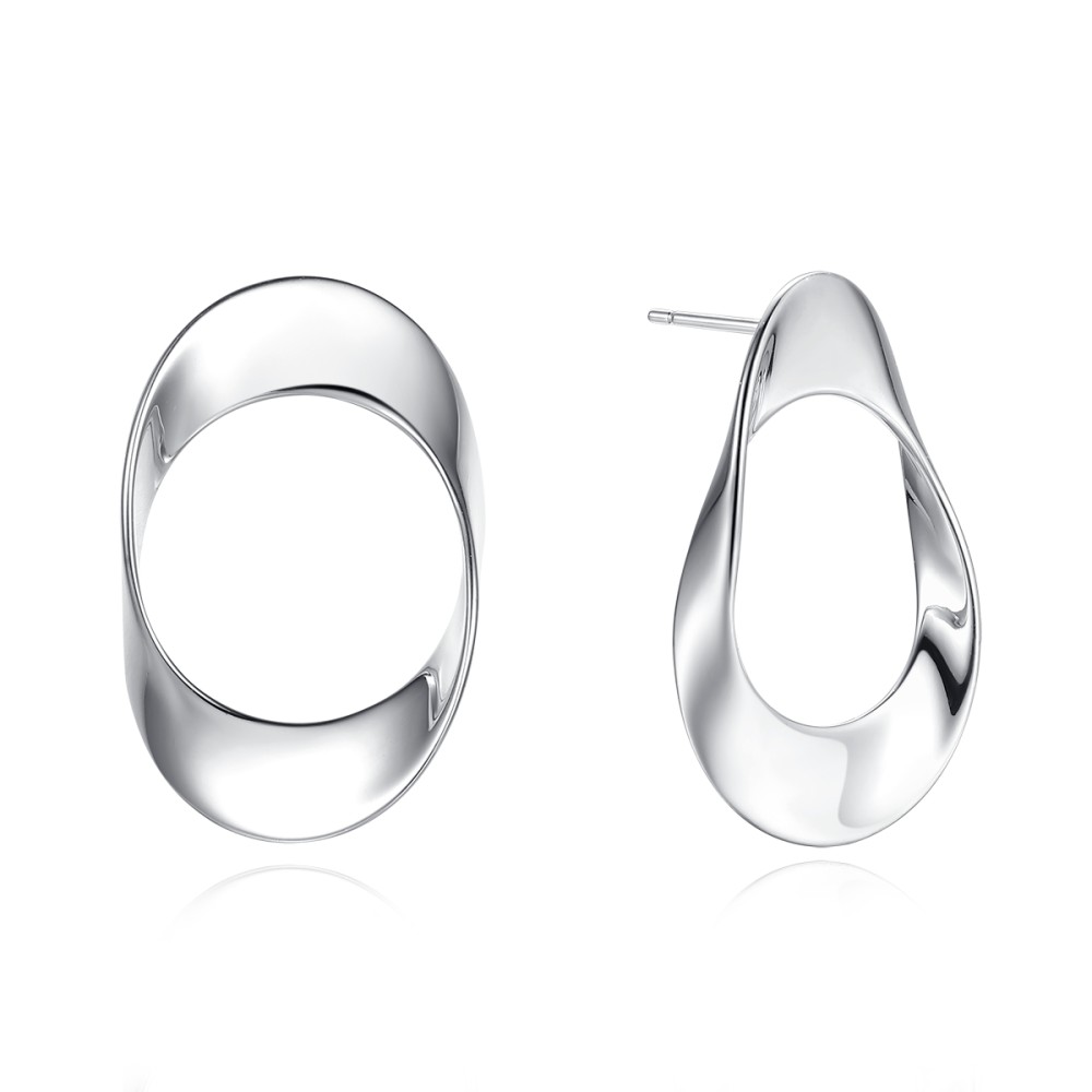 Ένα ζευγάρι σκουλαρίκια κρεμαστά, σε σχέδιο οβάλ από επιπλατινωμένο ασήμι 925°, της collection Bella.